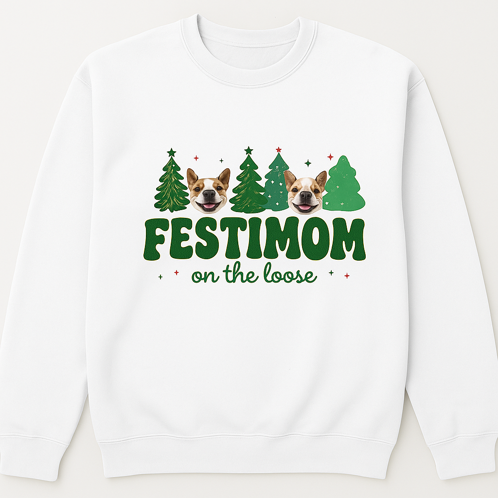 Festimom On The Loose Christmas Sweatshirt – Funny Holiday Pullover for Dog Moms