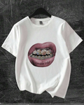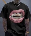 Level up your streetwear game with the Timeless Art Lips Graphic Tee. Featuring a bold artwork of glossy lips with diamond grillz and miniature angel paintings inside the teeth, this black t-shirt mixes luxury, art, and urban attitude. Perfect for Y2K lovers and those who want to stand out in any crowd.