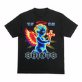 Saints Neon Angel Graphic Tee – Cross & Halo Streetwear Black T-Shirt