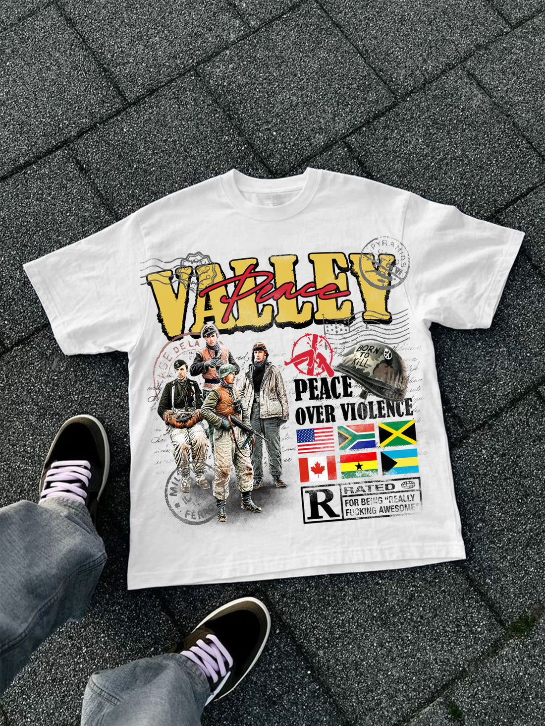 Make a bold statement with this Valley Peace Graphic T-Shirt, featuring powerful artwork that promotes...
