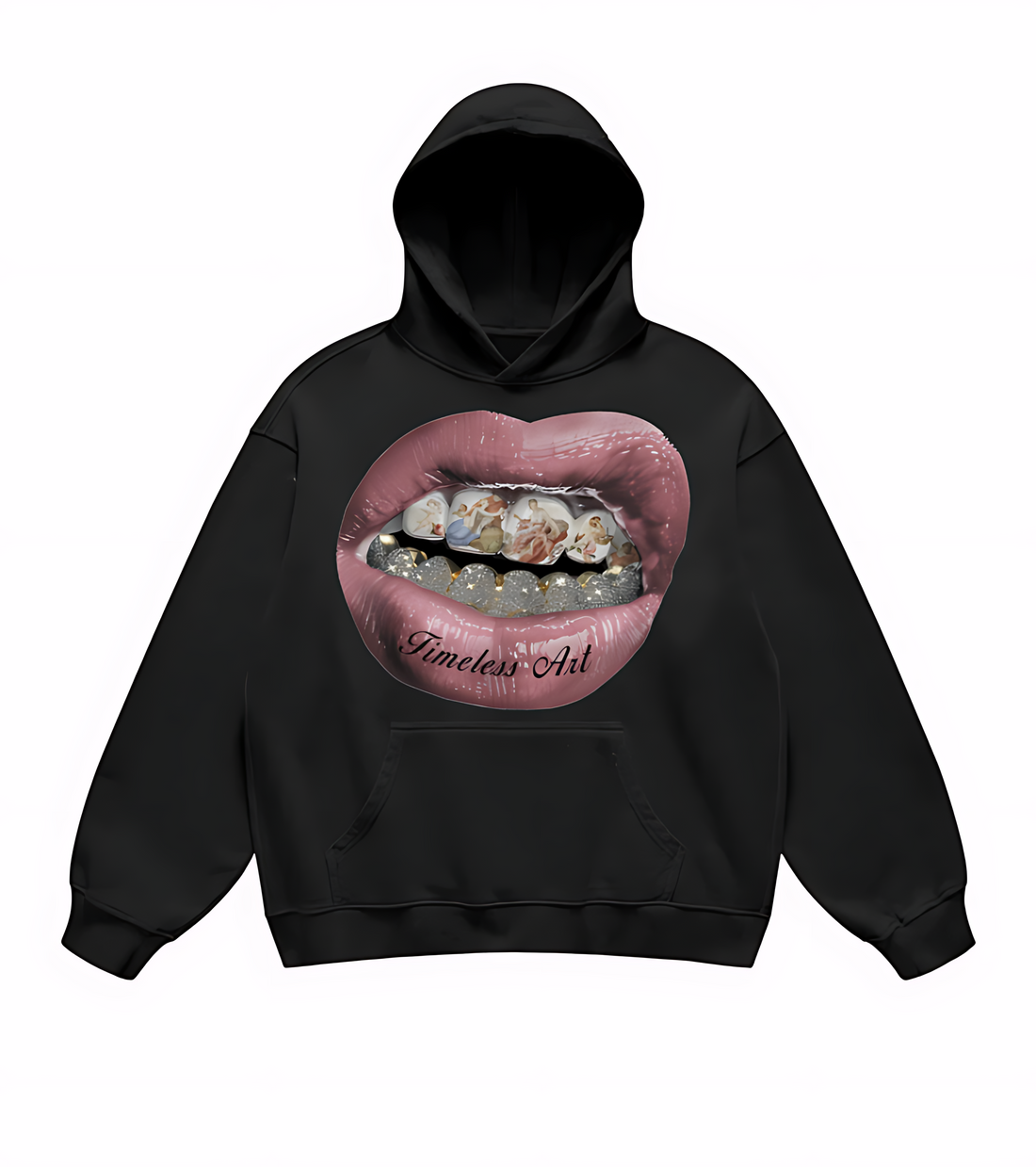 Timeless Art Lips Hoodie – Angel & Diamond Grill Graphic Black Unisex Streetwear Pullover