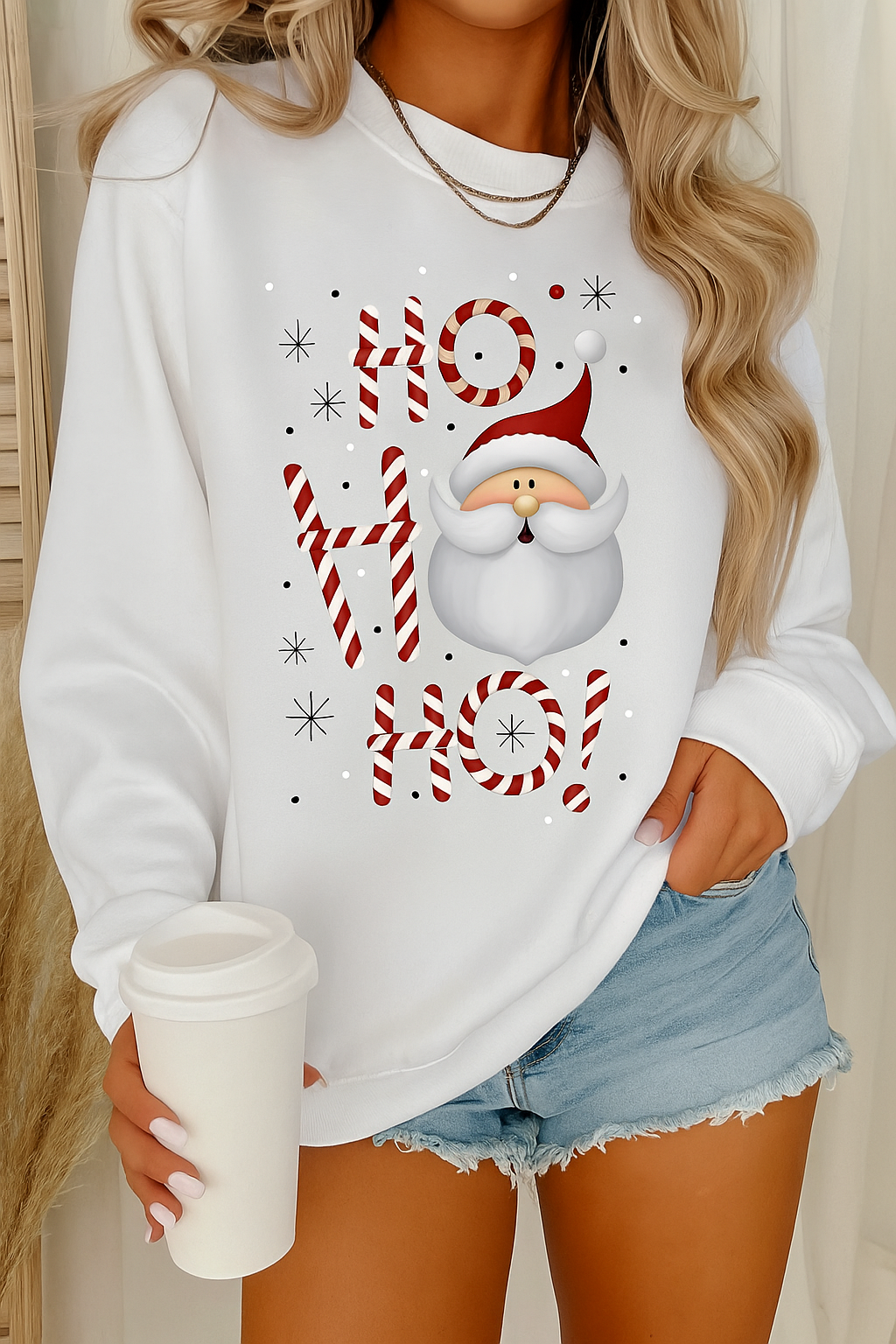 Ho Ho Ho Santa Face Christmas Sweatshirt – Candy Cane Holiday Pullover for Women and Men