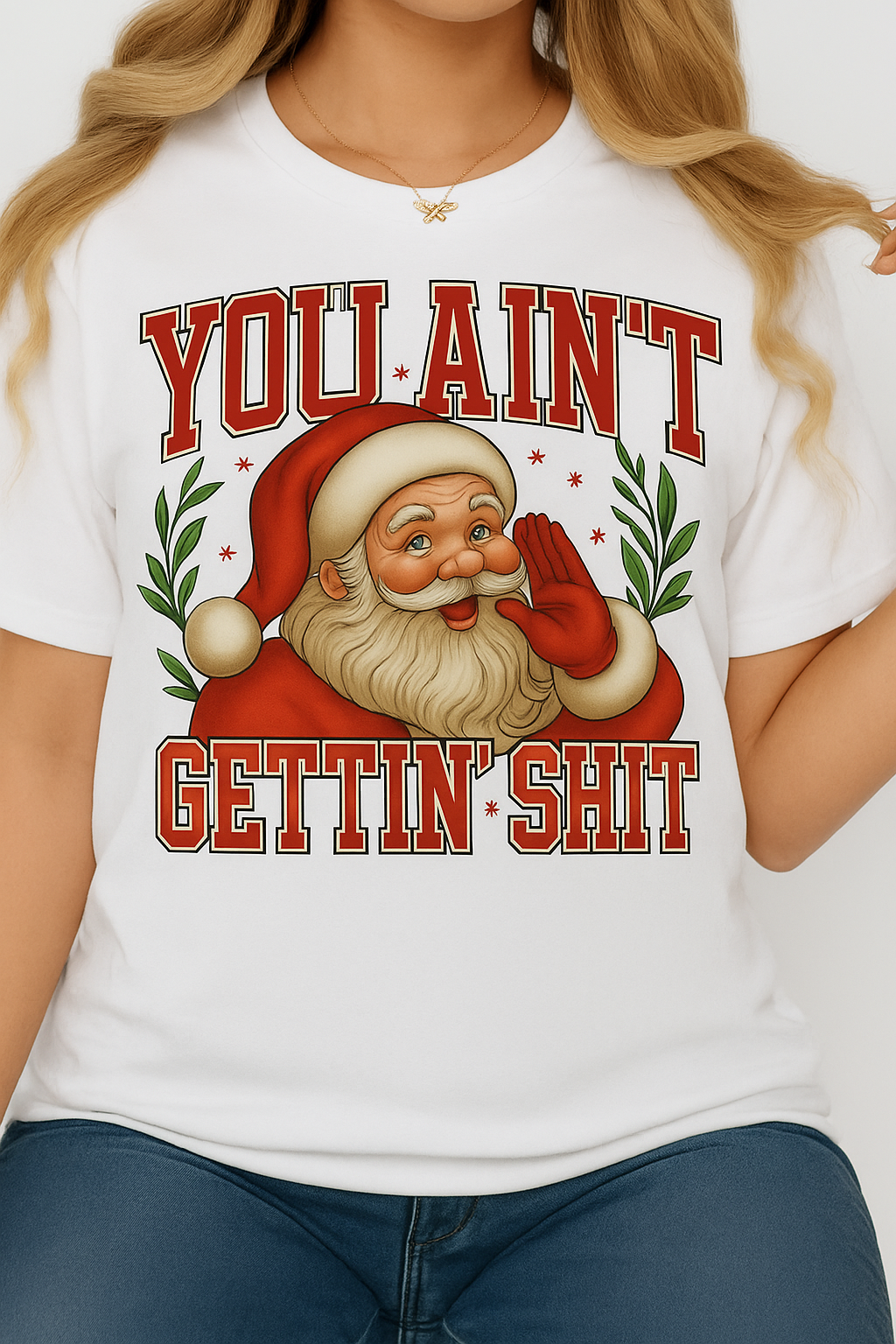 Funny Santa Christmas T-Shirt – You Ain’t Gettin’ Sh*t Graphic Tee