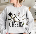 Add festive fun and humor to your winter wardrobe with this Funny Snowman Christmas Sweatshirt. Featuring a cheerful snowman in a polka-dot scarf and hat, holding up a glass of wine with the bold text “CHEERS!”, this pullover is the perfect mix of holiday spirit and lighthearted celebration.