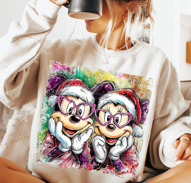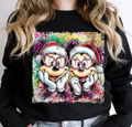 Add a splash of festive fun to your winter wardrobe with our Cute Christmas Couple Sweatshirt! Featuring an adorable holiday cartoon couple wearing Santa hats and matching heart-shaped glasses, this sweatshirt captures the joyful spirit of the season. The colorful, artistic design pops beautifully against the soft black fabric — perfect for Christmas parties, cozy nights in, or matching couple outfits.