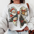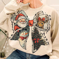 Vintage Christmas Bow Sweatshirt – Retro Holiday Graphic Pullover with Santa, Reindeer, Snowman & Tree