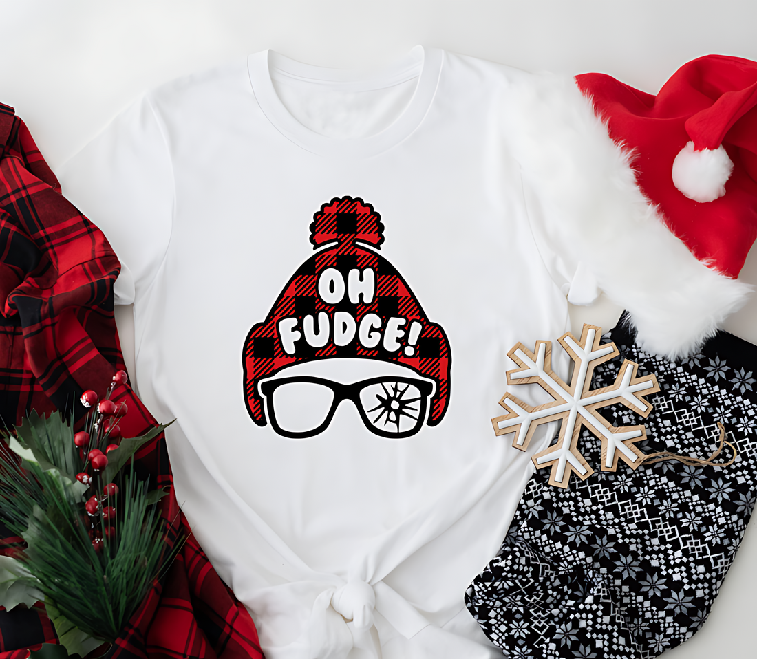Add some holiday humor to your festive wardrobe with our “Oh Fudge!” Christmas T-Shirt. Inspired...