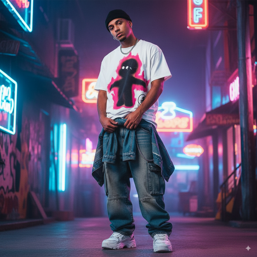 “Flame Shadow” – Unisex Y2K Graphic Tee | Kids & Adult Sizes | 100% Cotton | Harajuku Streetwear