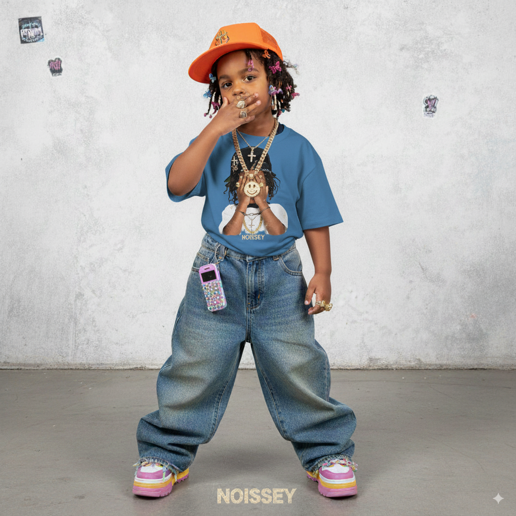 "Golden Youth" is more than just a T-shirt – it’s a statement. Featuring a bold front graphic of a silenced child and a powerful slogan on the back, this design channels the fearless energy of Y2K and Harajuku streetwear.