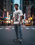 "Stunned Circuit Tee" is more than just a T-shirt – it’s a statement. Featuring a bold front graphic of a silenced child and a powerful slogan on the back, this design channels the fearless energy of Y2K and Harajuku streetwear.