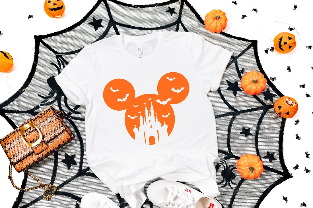 Halloween Pumpkin Castle T-Shirt – Spooky Bats Graphic Tee for Fall Parties