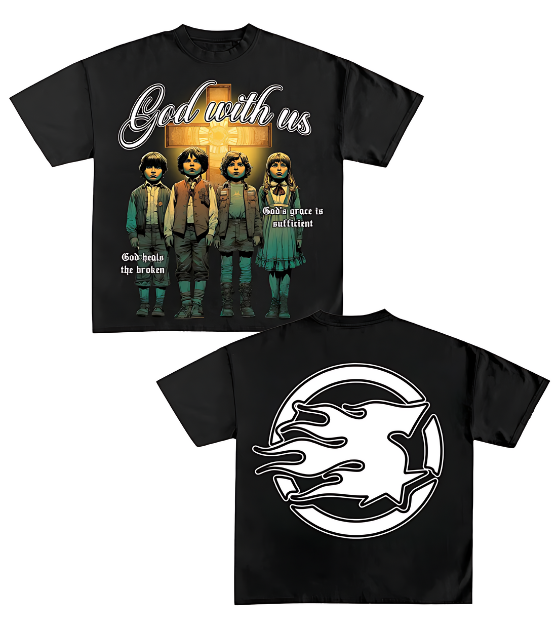 Make a bold faith-inspired statement with the “God With Us” Graphic T-Shirt. Designed in striking...