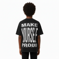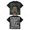"Make Yourself Proud"" is more than just a T-shirt – it’s a statement. Featuring a bold front graphic of a silenced child and a powerful slogan on the back, this design channels the fearless energy of Y2K and Harajuku streetwear.