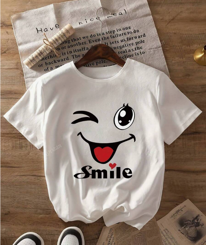 Brighten up your day and everyone else’s with this cute “Smile” graphic T-shirt! Featuring a...