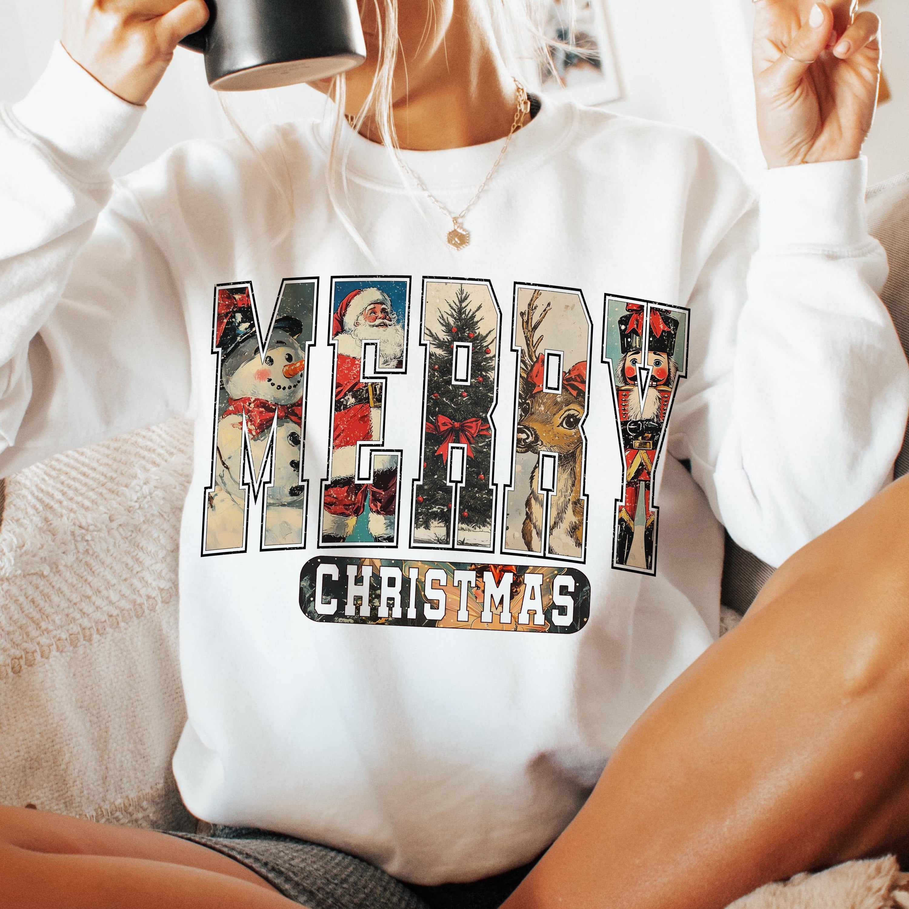 Merry Christmas Sweatshirt – Vintage Holiday Graphic Pullover for Women & Men & Kid