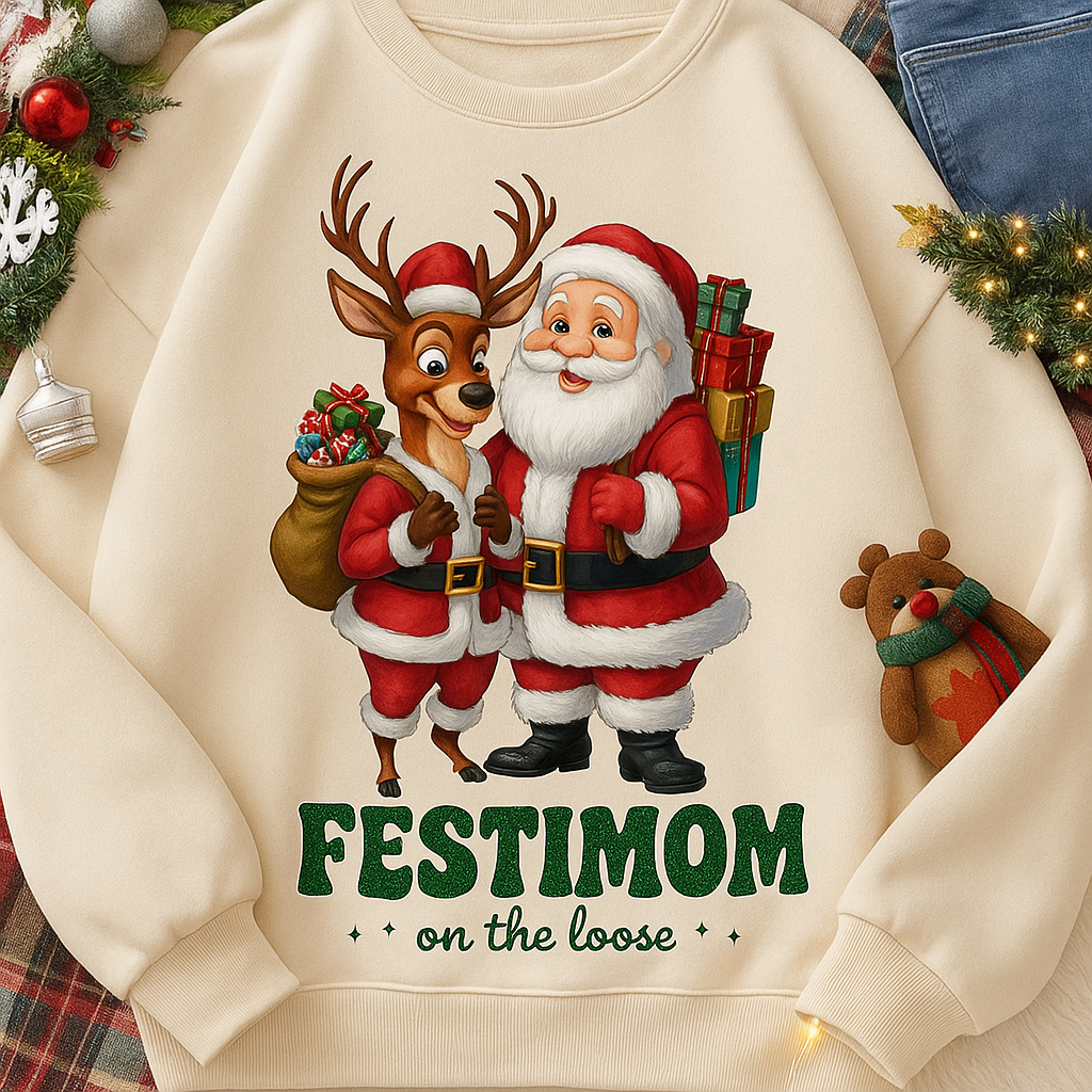 Santa and Reindeer Christmas Sweatshirt – Festive Holiday Pullover for Cozy Winter Days