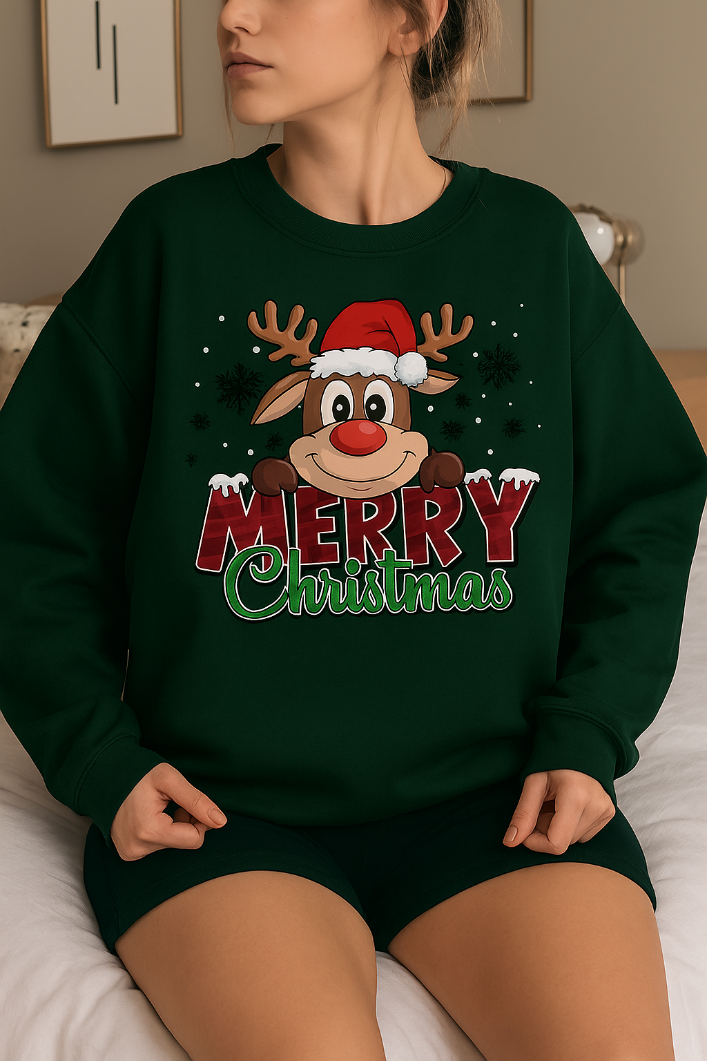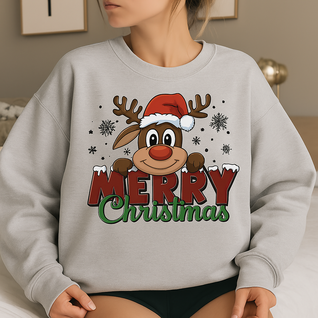 Merry Christmas Reindeer Sweatshirt – Cute Holiday Pullover for Family