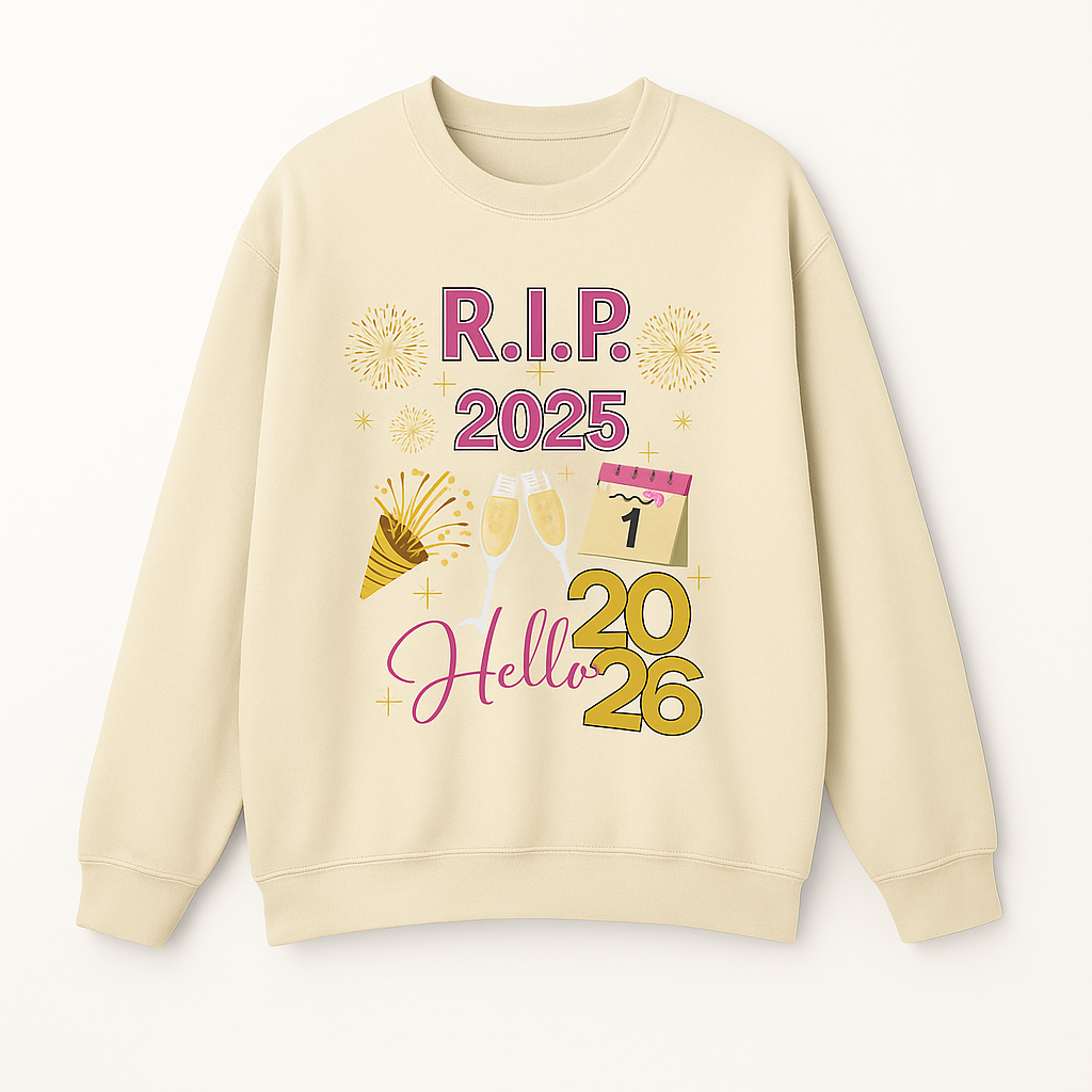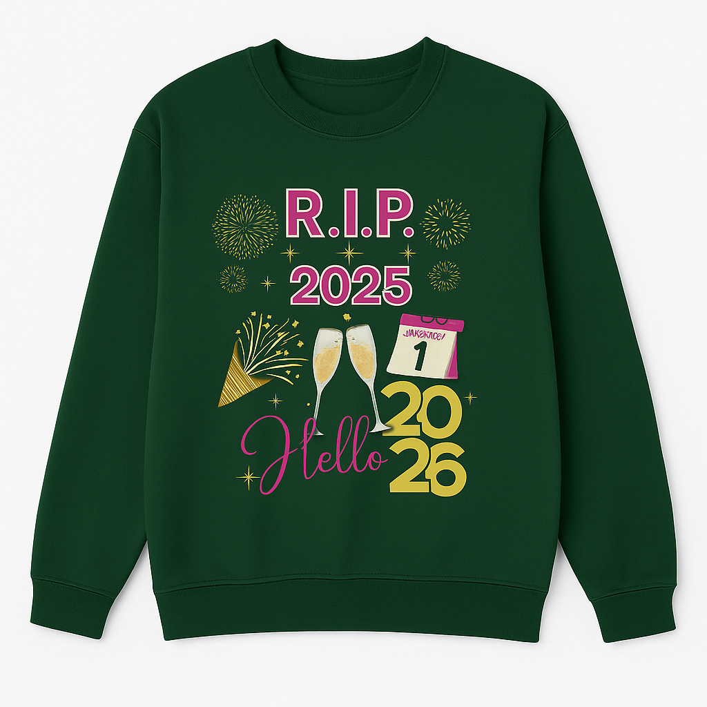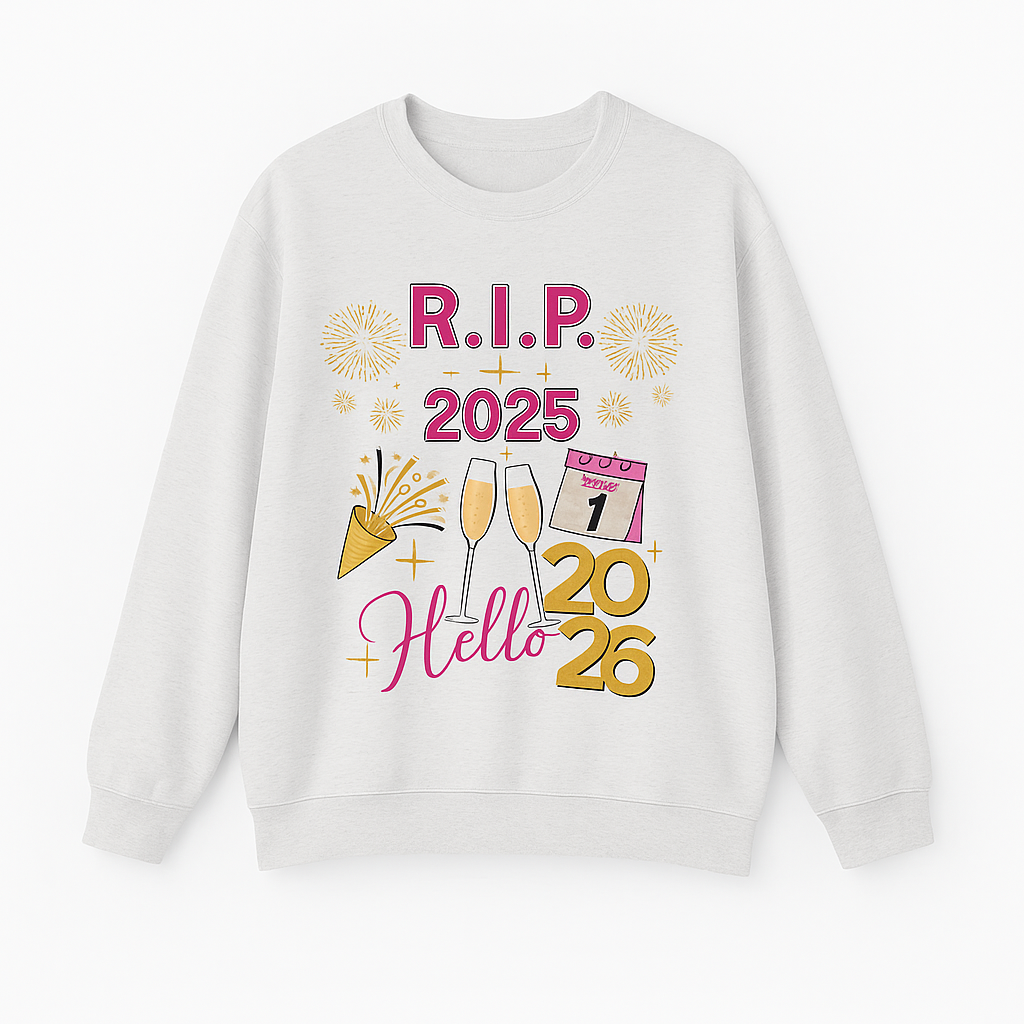 Say goodbye to 2025 and welcome 2026 in style with our R.I.P 2025 Hello 2026 Sweatshirt! This playful and festive design features champagne glasses, fireworks, and a “Hello 2026” graphic — making it the perfect outfit for New Year’s Eve parties or cozy countdown nights at home. Made from a soft, durable cotton-poly blend, this sweatshirt offers a relaxed unisex fit that keeps you comfortable while celebrating new beginnings. Ideal for ringing in the New Year with humor, sparkle, and positivity!