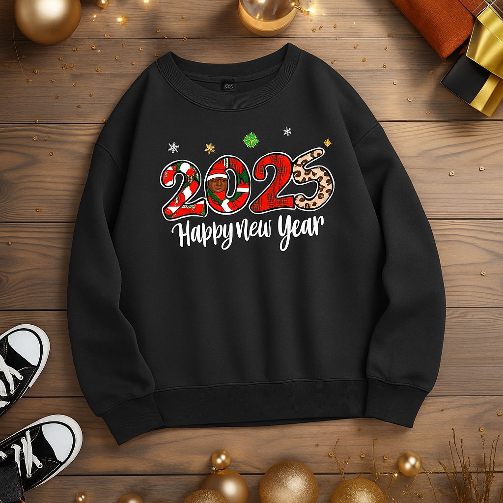 Welcome the new year in style with our 2025 Happy New Year Sweatshirt! This cozy and cheerful pullover features a vibrant “2025” graphic with a mix of plaid, leopard, and Christmas-inspired patterns, completed with a festive “Happy New Year” message. Made from a soft cotton-blend fabric, it’s warm, breathable, and perfect for winter celebrations, parties, or lounging at home. The high-quality print ensures bright colors that stay vivid through every wash — making it your go-to sweatshirt for ringing in the new year with comfort and joy.
