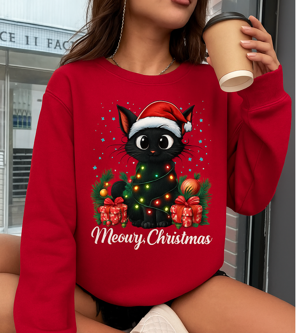 Meowy Christmas Cat Sweatshirt – Cute Holiday Pullover for Cat Lovers