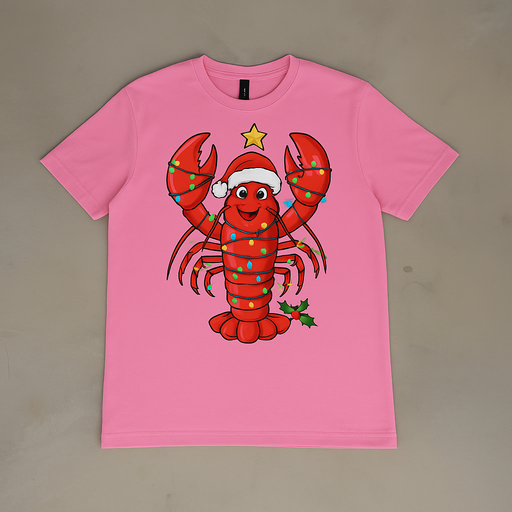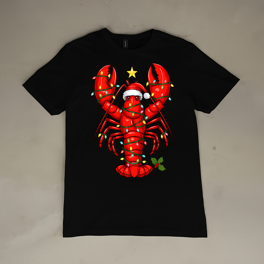 Bring a splash of seaside humor to your holidays with our Christmas Lobster T-Shirt! Featuring a bright red lobster wrapped in colorful Christmas lights and topped with a Santa hat and star, this festive shirt is the perfect mix of quirky and cheerful. Whether you’re celebrating Christmas by the coast or just love fun holiday designs, this tee adds a playful twist to your festive wardrobe. Made from soft, breathable cotton, it’s ideal for parties, family gatherings, or lounging by the fireplace.