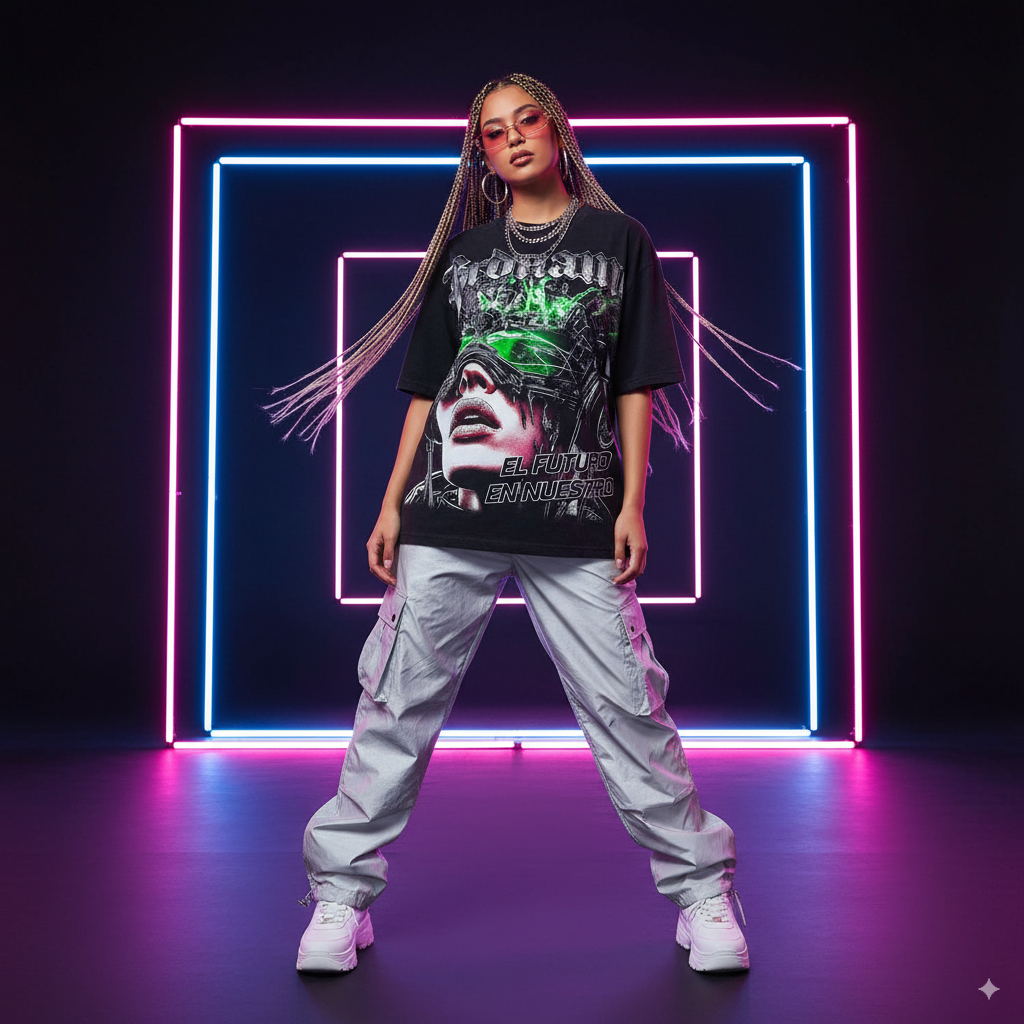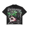 "Neon Overdrive Tee" is more than just a T-shirt – it’s a statement. Featuring a bold front graphic of a silenced child and a powerful slogan on the back, this design channels the fearless energy of Y2K and Harajuku streetwear.