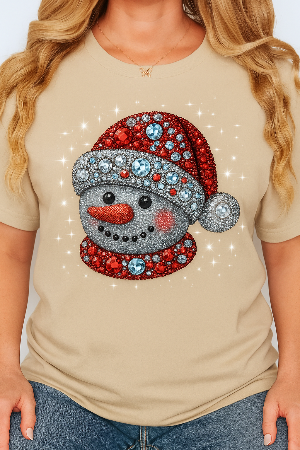 Shine bright this holiday season with our Rhinestone Snowman Christmas T-Shirt! Featuring a dazzling snowman made of red, silver, and blue rhinestones, this festive tee brings a touch of glamour to your winter wardrobe. The sparkling design captures the joy and magic of Christmas — perfect for parties, family gatherings, or casual festive days. Crafted from soft, high-quality cotton, this shirt ensures comfort while letting you sparkle in holiday style.