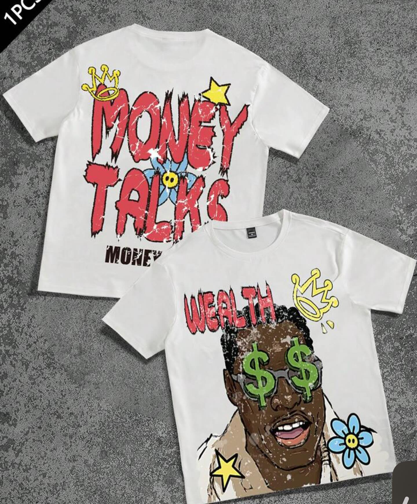 “WEALTH. MONEY TALK” – Unisex Y2K Graphic Tee | Kids & Adult Sizes | 100% Cotton | Harajuku Streetwear